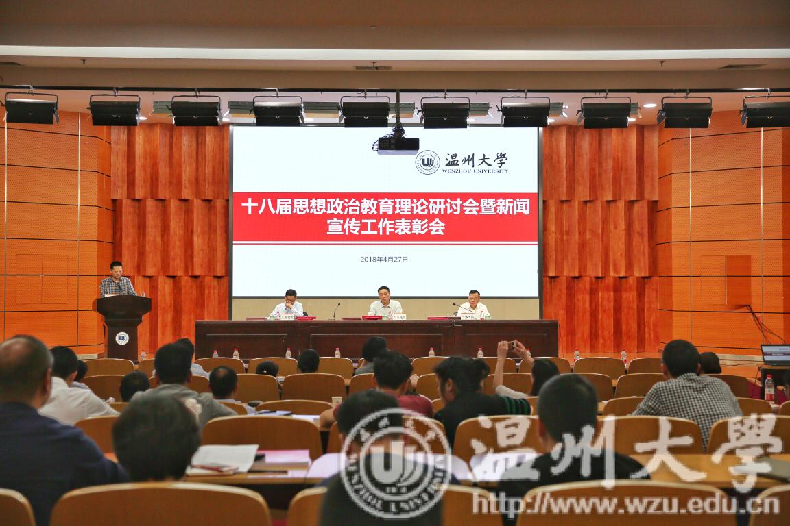 4月27日下午, 新澳门六合彩 第十八届思想政治教育理论研讨会暨新闻表彰会在岩松堂雁山厅举行。各学院、学区书记、副书记,各党务部门负责人,全体辅导员、新闻宣传员、思政研讨会论文作者参加会议。