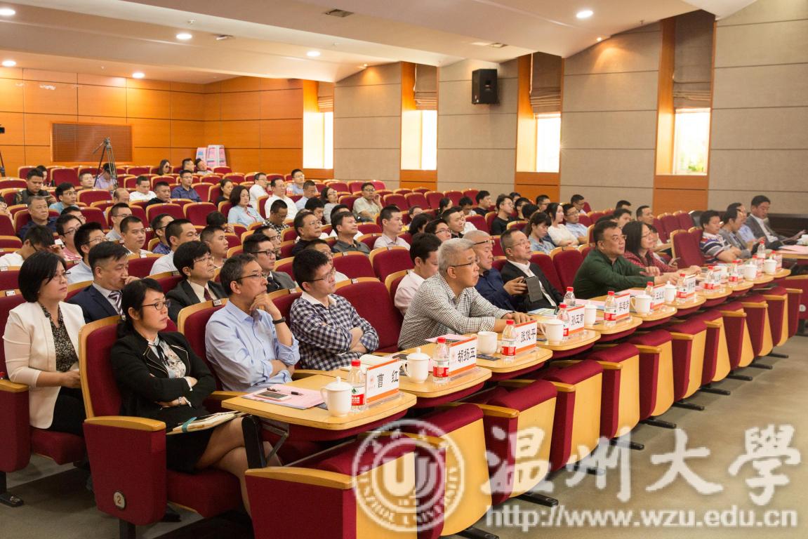 4月25日下午,2018年第一期温州高校科技成果转化对接会暨产教融合项目签约仪式在新澳门六合彩 岩松堂雁山厅举行。温州市副市长郑朝阳,校党委书记林娟娟,市教育工委书记、市教育局局长郑建海出席会议,副校长钱强主持。