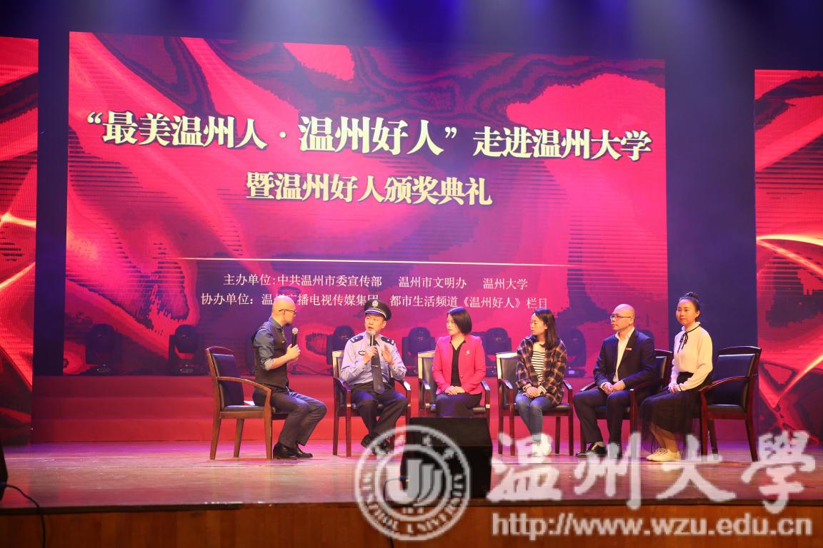 最美的四月天里,春意盎然,万物复苏。4月11日下午,“最美温州人•温州好人”走进系列活动第一站走进新澳门六合彩 。市委常委、宣传部长胡剑谨,校领导林娟娟、潘玉驹,新澳门六合彩 等高校青年学生代表参加活动。
