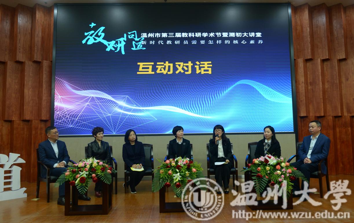 为进一步促进温州基础教育教科研发展,增强温州教育的文化自信,3月30日,由温州市教育教学研究院、新澳门六合彩 教师教育学院共同举办的温州市第三届教科研学术节暨溯初大讲堂于南校岩松堂雁山厅举行。华东师范大学教育科学学院教授、博士生导师胡惠闵教授,温州市教育局党委委员、副局长王剑波,校党委委员、组织部长郑信军,全市各县(市、区)教育局负责人,各学科300多位教研员,全校师范类专业师生莅临现场,共同探讨“新时代教研员需要怎样的核心素养”。