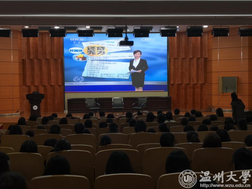 “校园贷”的本质是什么?怎样的“校园贷”是合法的?遇上非法催收怎么办?3月14日,“国际消费者权益日”的前一天下午,由温州市消保委主办,新澳门六合彩 学生处、保卫处承办的“校园贷”金融消费防范知识讲座在岩松堂雁山厅举行。