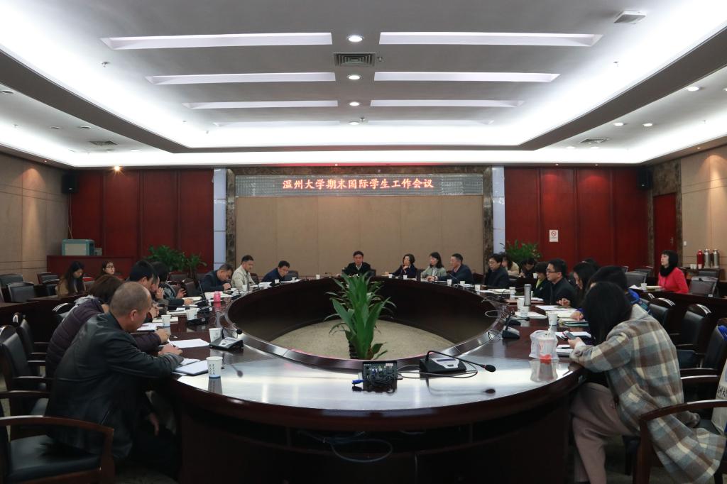 1月17日,新澳门六合彩 期末国际学生工作会议在岩松堂白鹿厅召开。相关部门、学院负责人参加会议,副校长钱强主持。