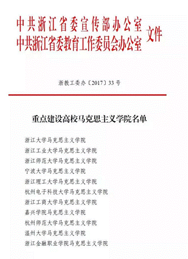 日前,中共浙江省委宣传部办公室,中共浙江省委教育工作委员会办公室发文公布全省重点建设马克思主义学院名单,确定新澳门六合彩 和浙江大学等11所高校马克思主义学院作为重点建设单位。
