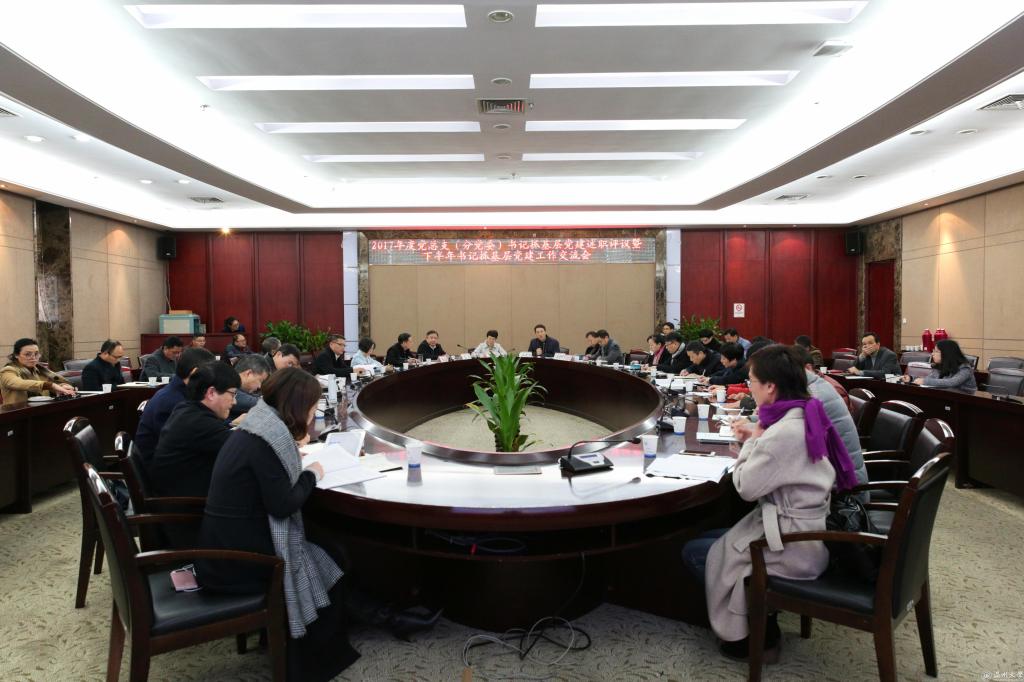 1月5日上午,新澳门六合彩 2017年二级党组织书记抓基层党建述职评议暨下半年书记抓基层党建工作交流会在南校岩松堂白鹿厅举行。校领导林娟娟、赵敏、吴金法、潘玉驹、郑信军出席会议,党群部门负责人、全校二级党组织书记参加会议,校党委副书记牟德刚主持。