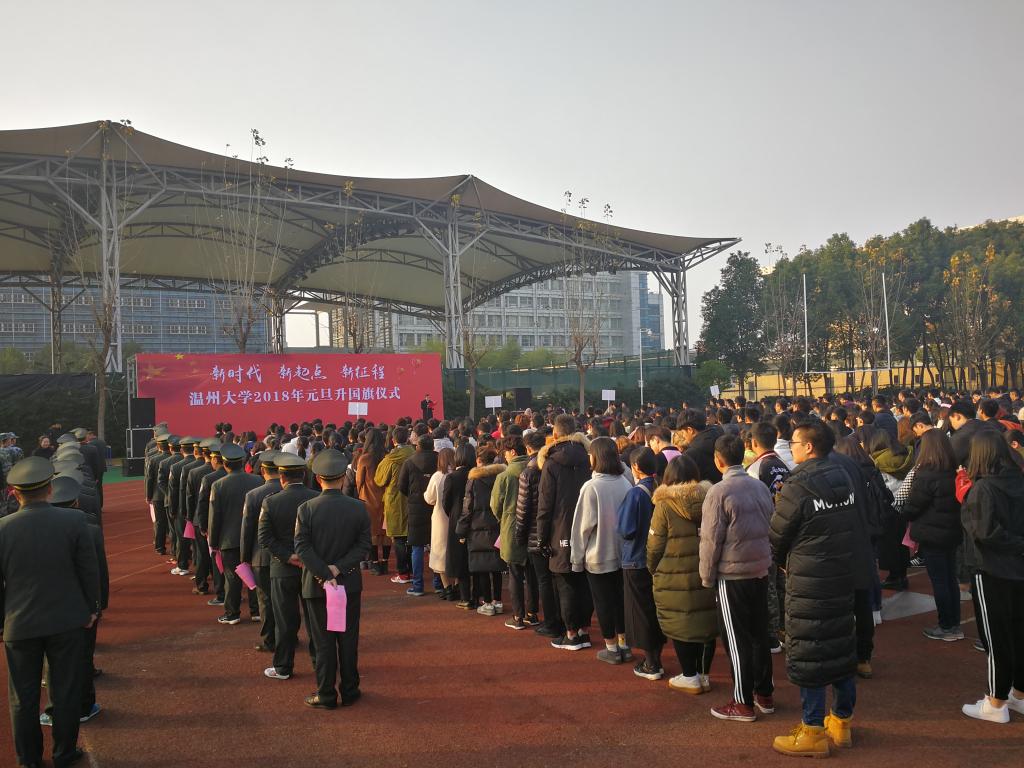 罗山迤逦,国旗巍巍。1月1日上午,新澳门六合彩 北校区运动场举行以“新时代 新起点 新征程”为主题的升国旗仪式,在爱国熏陶中不忘初心,在辞旧迎新中砥砺前行。校长李校堃,学校相关部门负责人,步青学区、溯初学区、超豪学区和瓯江学院师生代表,全体校卫队队员、国旗护卫队队员、红锋CLUB退伍学生以及校友代表近500人参加了庄重的升旗仪式,党委副书记赵敏主持。