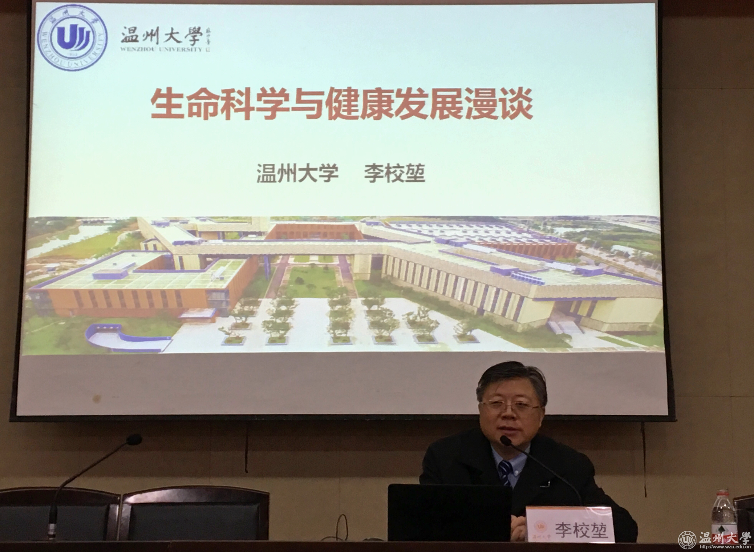 12月13日下午,新澳门六合彩 首期“生命健康大讲堂”开讲,校长李校堃作题为“生命科学与健康漫谈”专题讲座。生命与环境科学学院负责人和400余学生共同聆听讲座。