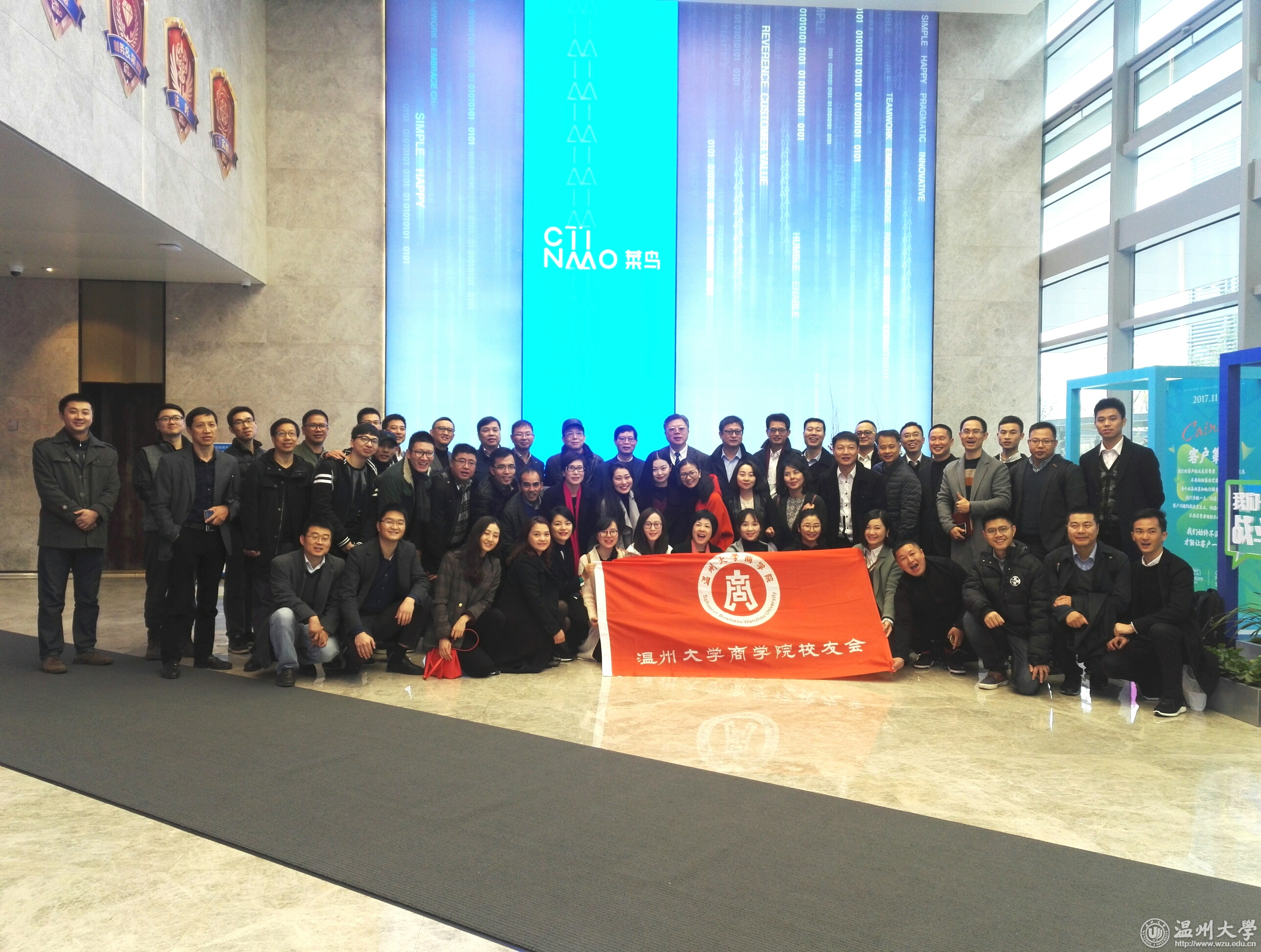 12月4日,新澳门六合彩 商学院校友会联合上海校友会、杭州校友会举行首期公益商务游学活动,校友先后走进阿里巴巴菜鸟物流公司与浙江新湖集团。校长李校堃,新澳门六合彩 商学院校友会会长、上海叁陆伍投资管理有限公司董事长王仲辉,上海校友会秘书长陈康汉,杭州校友会副秘书长陈振远,宁化投资公司董事长陈友相,学校相关部门、学院负责人,校友及师生代表六十余人参加活动。