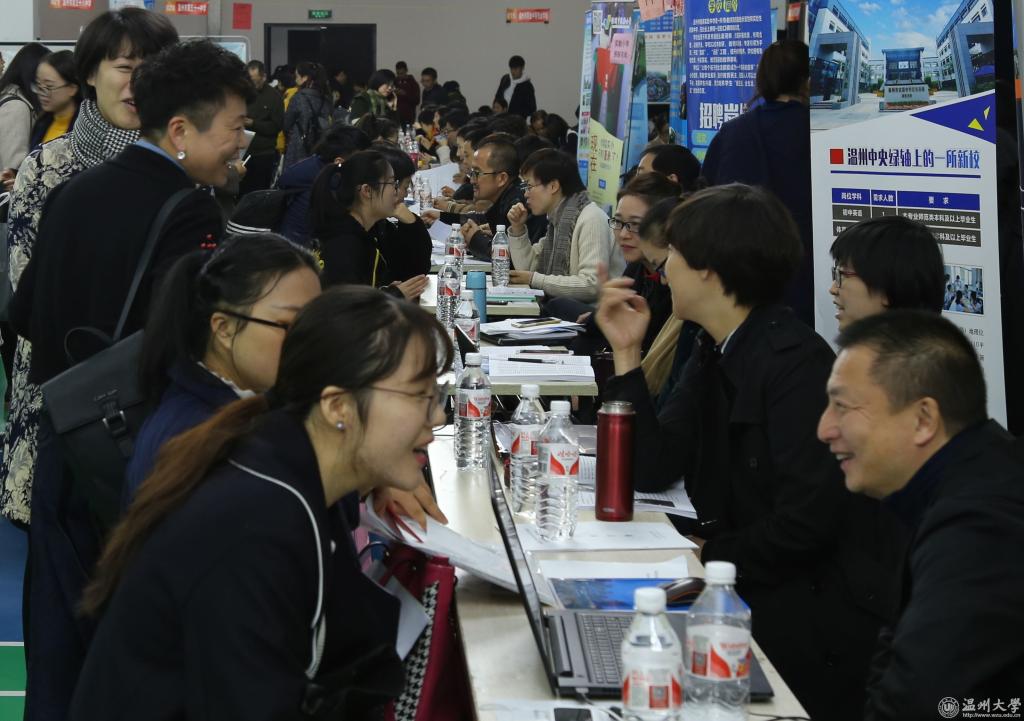 11月25日,温州市教育局组团来新澳门六合彩 举行2018届师范类毕业生提前批专场招聘会。温州市教育局党委委员、副局长伍挺、党委委员、纪检组长蔡亚里、人事处处长王传旺,温州市人力资源和社会保障局副局长胡正长、人才开发和市场处处长潘锦灿等到现场指导;学校党委副书记赵敏到场看望广大招聘工作人员,听取教育局、人社局领导以及中小学校长对新澳门六合彩 师范类人才培养质量的意见和建议,并与毕业生亲切交流。 招聘会上,市教育局直属公办学校和民办学校以及龙湾区、洞头区、乐清市、永嘉县、文成县、平阳县、泰顺县、苍南县等县市区教育局115个单位提供548个教师岗位,其中市教育局直属公办学校提供教师岗位70个,新澳门六合彩 2018届师范类毕业生、硕士毕业生以及其他院校师范类毕业生1000余人参会应聘。从现场了解到,体育、历史、中文、英语、数学、政治等学科的毕业生需求量较往年有所增加,尤其是优秀的体育男生倍受青睐。 近年来,温州市教育局、温州市人力资源和社会保障局对新澳门六合彩 毕业生就业工作越来越关怀。温州市教育局以人才引进方式提前来新澳门六合彩 招聘师范类毕业生,把招聘对象的范围首次扩大到前6个学期综合考评排名班级前35%,这是温州市师范类优秀毕业生招聘政策的重大突破。