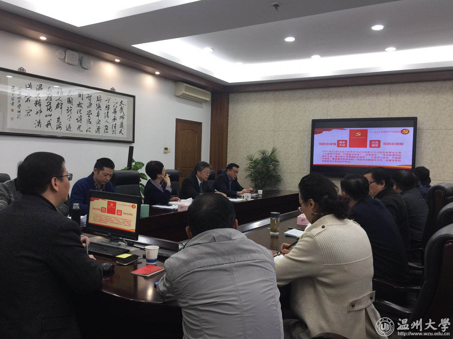 11月24日上午,学校召开党委理论中心组学习会专题学习党章(修正案)精神,全体校领导、党务部门负责人参加学习会,党委书记林娟娟主持。 党委委员、组织部长郑信军作“党的十九大‘党章修正案’精神要领解读”专题报告。他从“为什么要修改党章”“对党章修正案的相关了解”“十九大党章修正案的主要修改内容”“十九大党章修正案的精神实质”四个方面对党章修正案进行详细解读。郑信军指出,修改党章是实现党的指导思想与时俱进的客观需要,是新时代推动党和国家事业发展的必然要求,是推进党的建设新的伟大工程的战略举措,是贯彻落实党的十九大精神的现实需要。 他提出,十九大党章修正案明确党的建设与国家民族成就、使命的政治逻辑 ,彰显和保持党在理想追求上的政治勇气政治定力 ,丰富和完善党的政治理论政治路线政治方略 ,对全党提出系统的政治要求。 与会人员纷纷表示,党的十九大通过的党章修正案,体现了党的十八大以来党的理论创新、实践创新、制度创新取得的成果,体现了党的十九大报告确立的重大理论观点和重大战略思想。要增强学习贯彻党章的自觉性和坚定性,始终把学习党章、遵守党章、贯彻党章、维护党章作为一项重大政治任务抓紧抓好,切实维护党章的严肃性和权威性,把党章体现到党的各项工作和党员行动之中。