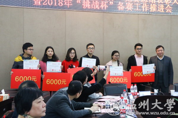 11月23日下午,新澳门六合彩 2017年“挑战杯”竞赛总结表彰大会暨2018年“挑战杯”备赛工作推进会在岩松堂白鹿厅召开。校党委副书记赵敏,学校相关部门负责人,各学院党总支书记、副书记、分管学科竞赛副院长、团委书记、学生代表,2017年“挑战杯”国赛获奖项目指导教师及项目成员90余人参加会议。