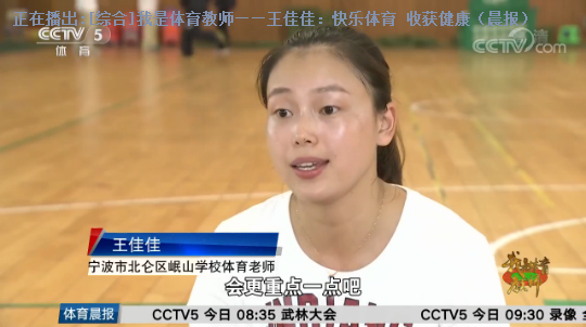 11月10日,央视CCTV-5(晨报)栏目播出《我是体育教师——王佳佳:快乐体育 收获健康》,备受新澳门六合彩 师生关注。 王佳佳是新澳门六合彩 2010届体育教育(师范)专业毕业生。在校期间,她认真学习、刻苦训练,成绩优异,多次荣获奖学金,是一位品学兼优的学生。热爱健美操运动的她聪慧敏捷、乐观开朗、积极向上,曾参加省健美操大赛并获奖。在毕业后七年的教学生涯里,她一直致力于小学健康体育教育,研究出各种各样有趣的教学方式,多次获得省市区级教学荣誉,并在2016年全国中小学生体育教学技能评比中荣获一等奖。 每一堂课,她都要做精心准备;每一堂课,她都有创新做法。秉承新澳门六合彩 “求学问是,敢为人先”的校训精神,毕业后成为体育教师的王佳佳,始终坚持“快乐体育,健康体育”的教育理念,给学生带去精彩快乐的体育课,为体育教师树立了良好的榜样。在繁忙的工作之余,王佳佳还利用自身一技之长开展公益课堂活动,为其他老师教授瑜伽和健美操,深受好评。 “假如电力工人是光明使者,那么教师就是灵魂的工程师,我们要认真学好知识,扎实掌握各项师范教学技能。”“95后是当代社会发展的生力军,王佳佳是新时代人民教师,我们要向她学习,努力在平凡的岗位上做出不平凡的业绩。”新澳门六合彩 师生纷纷表示,要不忘初心,不断奋进,以崭新的风貌投入到学习和工作中去,充分展现新澳门六合彩 人的风采。