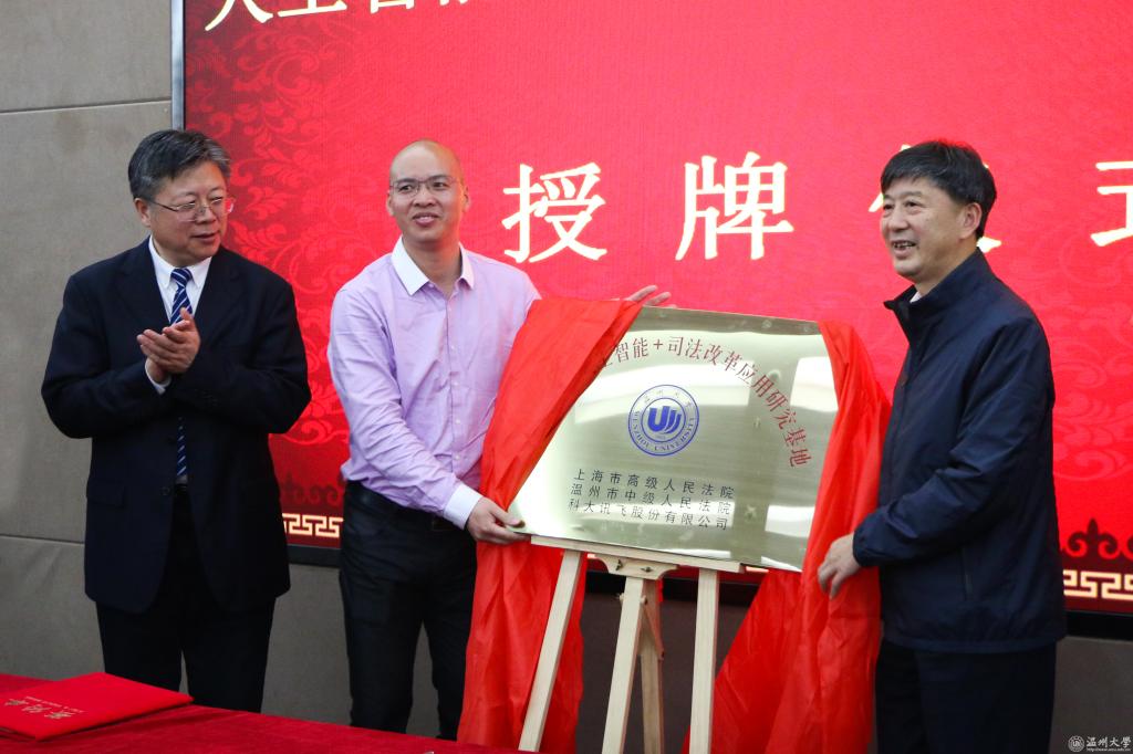 11月6日下午,新澳门六合彩 人工智能+司法改革应用研究基地签约仪式在南校区岩松堂白鹿厅举行。校长李校堃、副校长方益权,上海市高级人民法院院长崔亚东、副院长郭伟清,温州市中级人民法院院长徐亚农、副院长邱志丰,科大讯飞股份有限公司副总裁赵志伟、总经理徐甲甲等出席签约仪式,方益权主持。