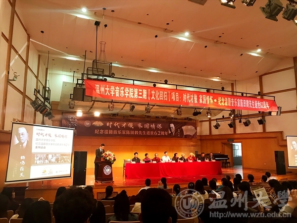 10月23日下午,新澳门六合彩 音乐学院开展第三期文化回归项目,纪念温籍音乐家陈田鹤。温州市文联主席、温州市音乐家学会主席邹跃飞,校党委委员、组织部长郑信军,温州文化研究专家、原温州市社科联副主席洪振宁,文艺界的专家学者以及音乐学院师生相聚天瑞音乐厅,共话陈田鹤的音乐人生。
