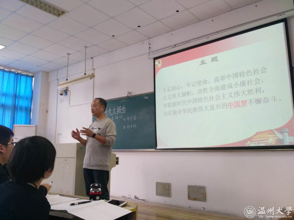马克思主义学院为贯彻党的十九大精神作了充分准备。在党的十九大召开前夕,学院召开全体教师大会,统一部署,要求全体思政课教师把认真学习宣传和贯彻落实党的十九大精神作为当前和今后一段时期的重要政治任务:一是要认真学习领会十九大会议精神,学早、学深、学透;二是要在四门思政理论课中全面推进十九大精神进课堂的教学活动;三是利用线下和线上两种方式,以“喜迎十九大 我想对你说”、“党的十九大报告我最喜爱的一句话”等为互动主题,鼓励广大学生积极参与,为迎接党的十九大召开营造了和谐进取的氛围。砥砺前行,踏上新时代中国特色社会主义新征程,广大青年学生与教师在课内外的互动教学中纷纷表示要坚定信心,志存高远,在为实现中华民族伟大复兴的中国梦中不懈奋斗,用自己的青春书写中国的骄傲。