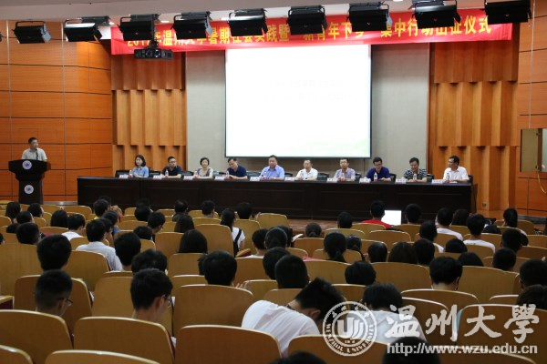 7月2日下午,新澳门六合彩 2017年暑期社会实践暨“新青年下乡”集中行动出征仪式在南校区岩松堂雁山厅举行。校党委副书记赵敏,校党委委员、宣传部部长潘玉驹,乐清市委宣传部常务副部长张龙以及学校相关部门负责人、学院分管书记、团委书记、暑期社会实践队指导老师,各实践队队长300余人参加了出征仪式。