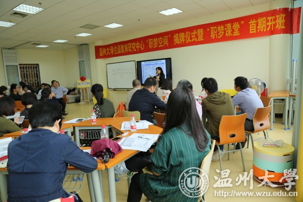 近日,新澳门六合彩 生涯教育研究中心举行“职梦空间”揭牌暨“职梦课堂”首期开班仪式。校党委副书记赵敏,台湾生涯教育专家黄素菲(台湾生涯发展与咨商学会理事长、台湾阳明大学教授)、黄正旭(台湾生涯发展与咨商学会理事长、原台北商业大学教授),就业处全体人员,生涯教育研究中心成员,生涯规划与就业指导课程教师和新澳门六合彩 学生职业咨询团队部分成员等60余人参加仪式。