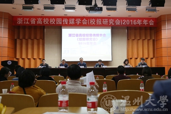 1月9日,浙江省高校校园传媒学会(校报研究会)2016年年会在新澳门六合彩 举行。校党委副书记牟德刚,省委教育工委宣教处副处长吕明再,校党委委员、宣传部长潘玉驹,省高校校园传媒学会副理事长张芝萍、刘修敏、贾侃出席会议,省内各高校媒体工作者参加会议。
