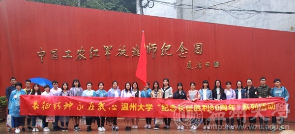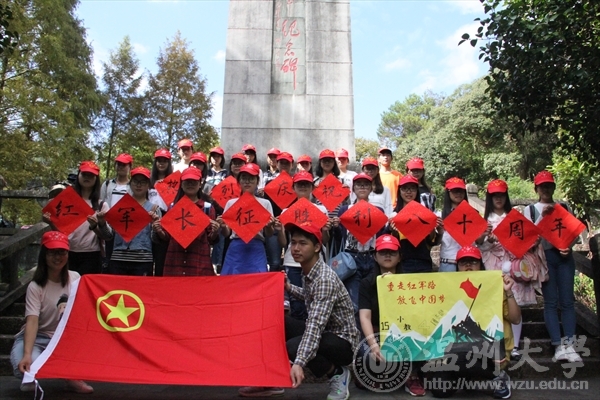 10月以来,新澳门六合彩 团委号召各基层团支部,结合“纪念长征胜利80周年”专题开展系列团日活动,带领广大学子接受爱国主义再教育,弘扬伟大长征精神,将爱国主义教育和革命传统教育融入新生养成教育中,引领走好人生新的长征路。 教师教育学院16小学教育3班团支部开展以“爱国情 中国梦 我的梦”为主题系列活动,全体学生走入温州江心屿革命烈士纪念馆重温历史,观看长征电影,体验长征路,铭记祖国战胜苦难的历程,培养深厚的爱国之情。该院15小教4班团支部来到了温州市永嘉县红十三军旧址,用他们师范生独特的长征微课方式唤醒当代大学生对长征的记忆,更深刻认识到艰苦奋斗是传家宝,是立党、立国之本,也是个人的立德、立业之本;懂得了什么是长征精神——即坚定不移的革命信念,充满乐观的英雄气概,亲密团结的高尚品德,全心全意为人民服务的革命宗旨。 瓯江学院举行纪念红军长征胜利80周年书画作品展、朗诵《回顾长征胜利光辉岁月》、集体观看电影《长征》、制作衍纸作品、开展学习长征精神讲座、慰问参加过长征的老党员等丰富多彩的活动,来纪念红军长征胜利80周年。