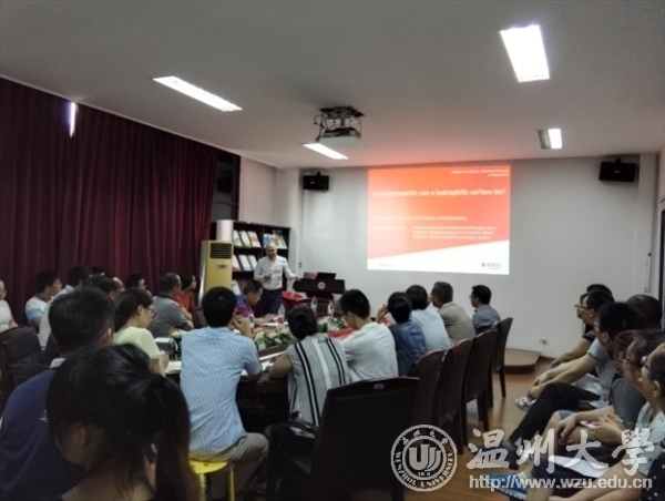 考察期间,汪大洋教授与韩明勇教授做客新澳门六合彩 化材学院“瓯江学术论坛”,分别作了题为“How hydrophilic can a hydrophilic surface be?”与“What about ‘Intrinsically Functional Silk’?”学术报告。报告吸引了学院广大师生与新澳门六合彩 -温医大生物医药协同创新中心骨干科研人员,并就相关学术问题进行热烈的交流。