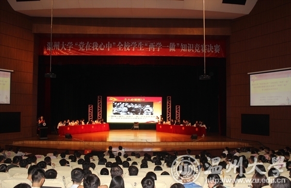 6月12日晚,新澳门六合彩 “党在我心中”全校学生“两学一做”知识竞赛决赛暨全校党务骨干培训开班仪式在大学生活动中心育英大礼堂举行。校党委委员、组织部长方益权,宣传部、研工部、学工部负责人,各学院、学区的分管书记,全校教工、学生党支部书记,学生党员代表共计1200余人观看并参与活动。 经过第一轮笔试预赛,人文学院、马克思主义学院、法政学院、超豪学区、瓯江学院一队、瓯江学院二队、溯初学区、生命与环境科学学院等8支代表队进入决赛。决赛由个人必答、小组共答、小组抢答、风险答题、附加抢答等五个环节组成,内容涵盖《中国共产党章程》《中国共产党廉洁自律准则》《中国共产党纪律处分条例》《中国共产党党员权利保障条例》《习近平总书记系列重要讲话读本(2016年版)》《中国近现代史纲要(2015年修订版)》等。同时,比赛还设置了现场观众抢答环节。比赛现场气氛热烈,学习教育氛围浓厚。最终,马克思主义学院代表队获得一等奖。