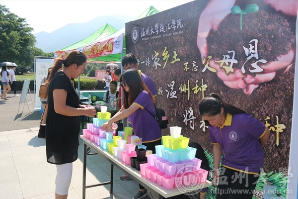 瓯江学院收集新生家乡土并播种,让新生牢记家乡情父母恩。城市学院各分院吉祥物热情迎接新生的到来。