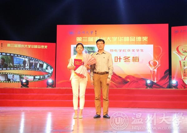 学生处处长蔡联群为叶冬梅同学颁奖。