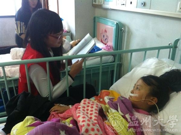 3月12日下午,溯初学区举办了“溯初学堂伴你读书”活动。8名溯初学堂志愿者在志愿者工作中心成员的带领下来到温州医学院附属儿童医院进行近4个小时的爱心助医行动。 乘车将近一个小时后,在黄东济老师的带领下,志愿者带着各自精心准备的文具,进入了附二医的小儿外科住院部。在向住院部护士询问了孩子们的基本情况后,志愿者们被安排到不同的病房,与孩子进行深入交流与互动。志愿者的到来使小朋友们枯燥单调的住院生活添上了许多欢乐,教画画,折千纸鹤,讲故事,各种有趣的活动使孩子们原本呆滞的脸上绽放出灿烂的笑容。 临近傍晚,为了不打扰孩子们的休息,志愿者们不得不离开了。当我们快要离开时,有孩子还问道:“你们啥时再来啊?”“我被感动了,一下午的努力都不算什么,他们的笑容是最好的回报。”志愿者感慨道。 虽然我们不能治愈患儿的生理病痛,但我们能给他们带上一份温暖的心理慰藉,让他们用微笑和勇气面对病魔。溯初学区志愿中心除此次活动之外,还正在策划捐赠书籍给患病儿童活动。