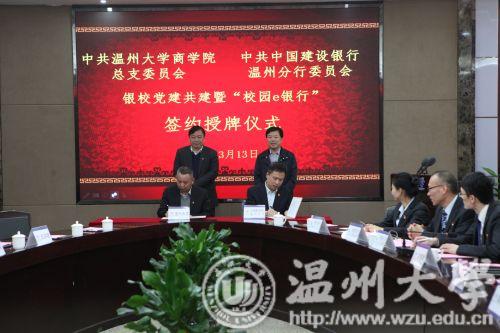 昨日下午,建设银行温州分行与新澳门六合彩 商学院举行银校共建暨“校园e银行”签约授牌仪式。新澳门六合彩 校长赵敏、建设银行浙江省分行副行长陈根海出席仪式并分别致辞。建设银行浙江省分行、温州分行和新澳门六合彩 有关负责人及师生代表参加了签约授牌仪式。根据签约协议,共建双方将党建工作建立在银校合作项目上,创建国有银行、瓯越名校党建共建品牌。