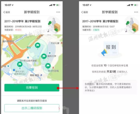 雷霞介绍,“GPS定位”报到微应用因为学生人数以及定位范围对接问题,前两个学期都处在内测阶段,这次则是正式上线。