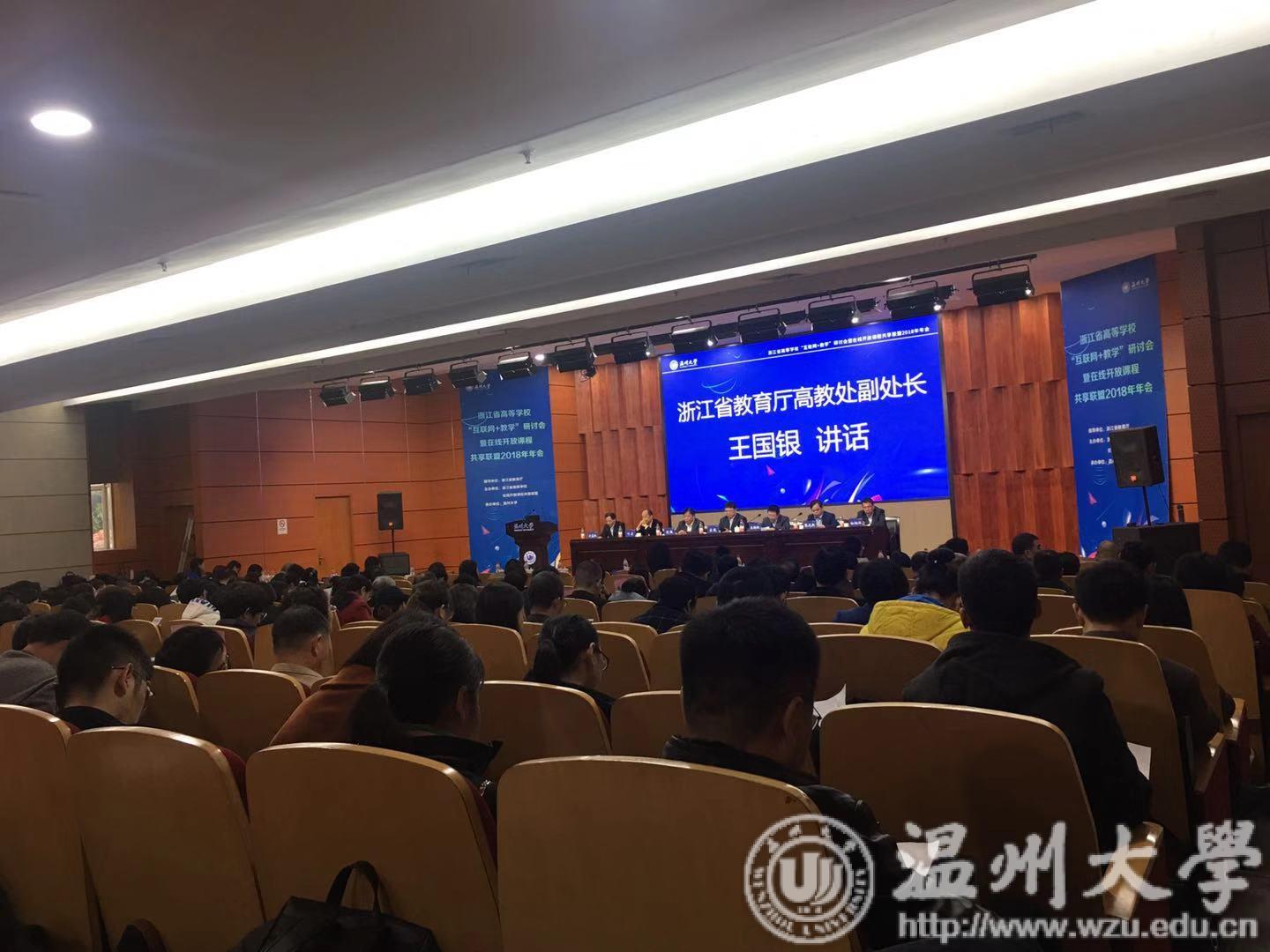 未来的“互联网+教学”会是怎样?浙江省慕课建课top10有两所温州高校?今天,浙江省高等学校“互联网+教学”研讨会暨在线开放课程共享联盟2018年年会在新澳门六合彩 召开。来自浙江大学、四川大学、西安交通大学、华中师范大学、西南交通大学、重庆大学、上海大学等全国120多所高校200余人参加了本次会议。