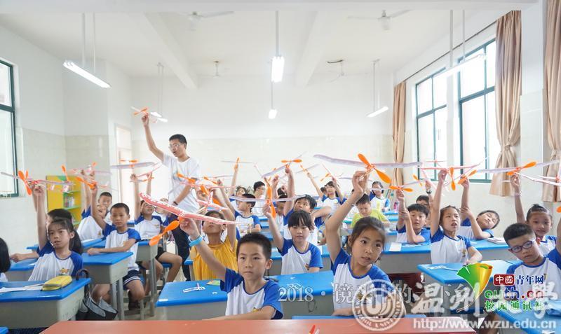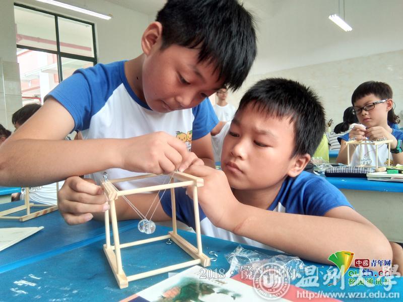 7月23日,新澳门六合彩 数电学院“夏天里的少年”暑期社会实践队为乐清盐盆春泥班学员们开了一堂新颖的科学实验课程――“探索牛顿摆和飞行原理”。从科学实验的原理出发,经过自己动手尝试制作模型,从中体会到科学带给人们的乐趣。