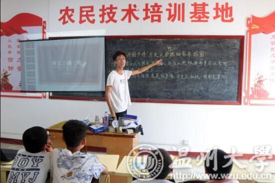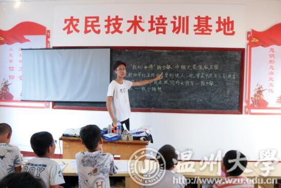 2018年7月27日,新澳门六合彩 步青学区“青韵”暑期社会实践队自温州来到延安市洛川县石头镇史家圪劳村进行红色教育为主题的支教活动已有6天。在过去的3天中,实践队的小教师借鉴延安地区丰富的红色文化资源以及革命先烈故事,为史家仡劳村额孩子们带来了一堂堂活泼生动的红色教育之品德课。