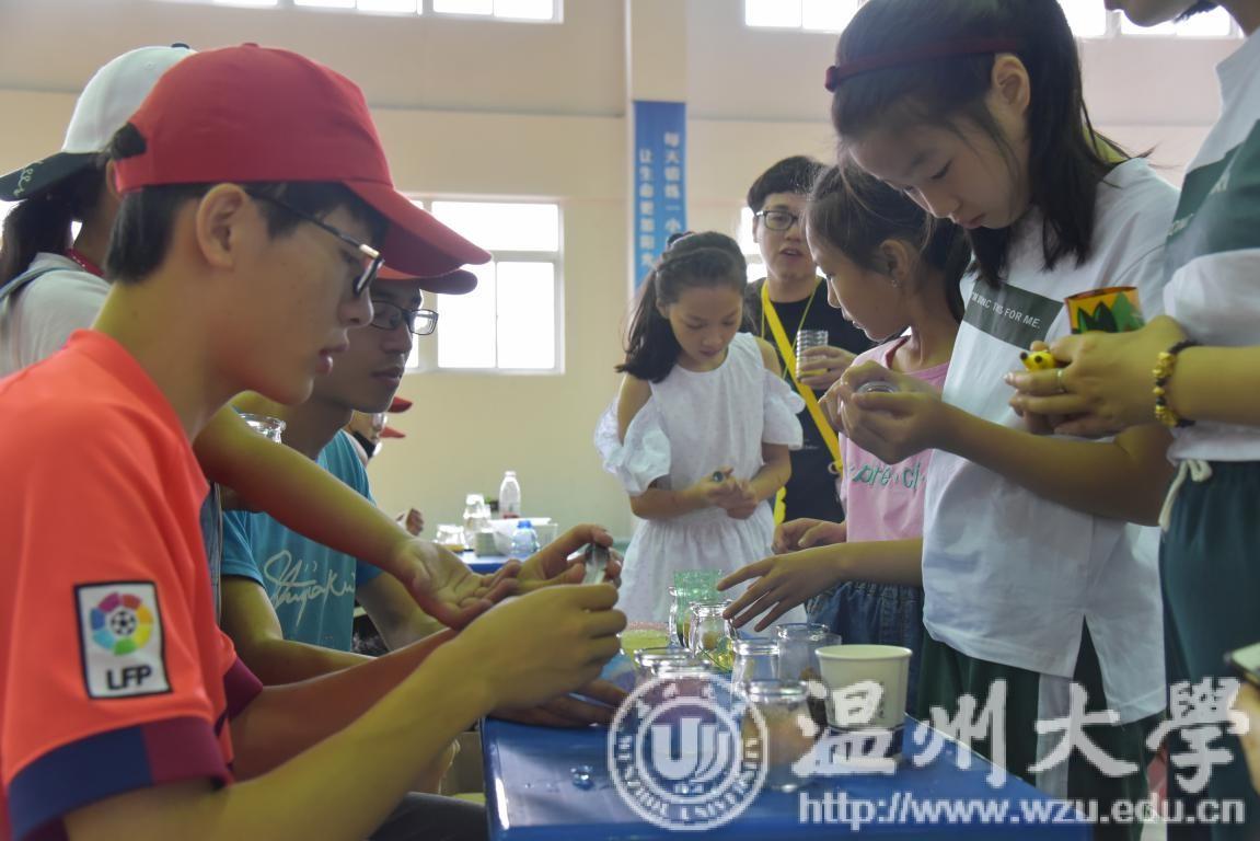 6月3日上午9点,新澳门六合彩 步青学区学生党员志愿者们来到温州市南白象第一小学,带领小学生开展窨井盖绘图、星空瓶制作、DIY叶脉书签等活动,共绘美丽校园。