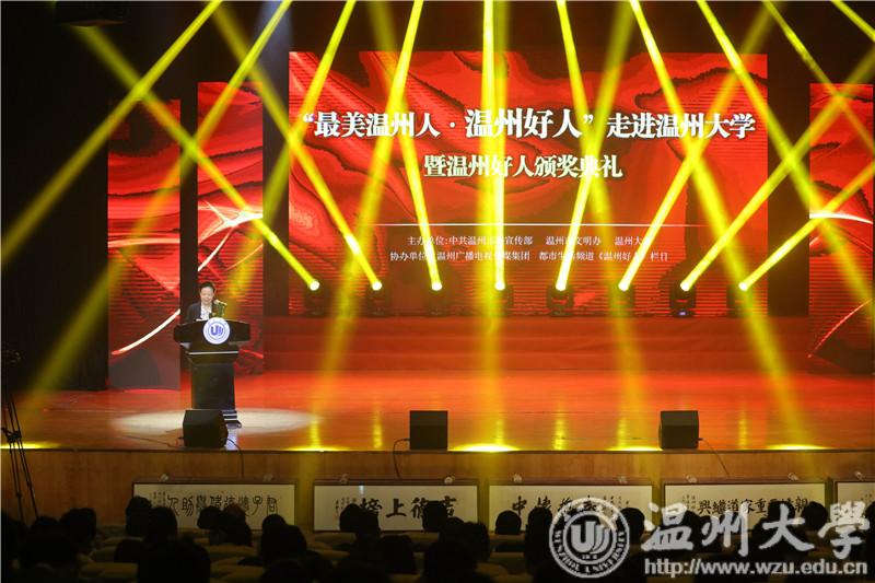 “乐善好施、崇德向善”是根植于每一位温州人血脉的道德基因。 4月11日下午,温州市举行2018年“温州好人”颁奖典礼,在新澳门六合彩 城1000多名师生的见证下,温州市委宣传部、市文明办对70名温州好人予以通报表彰。