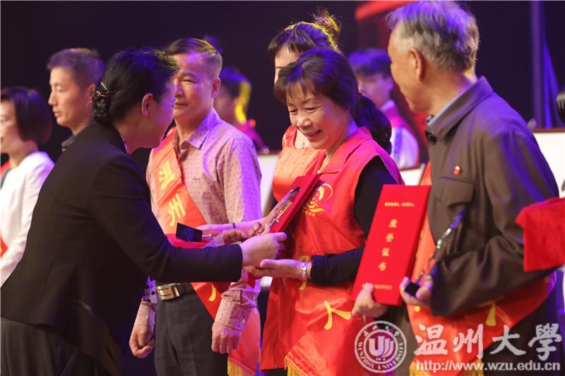 浙江好人代表刘荷兰为好人颁奖。图片来源:温州文明网