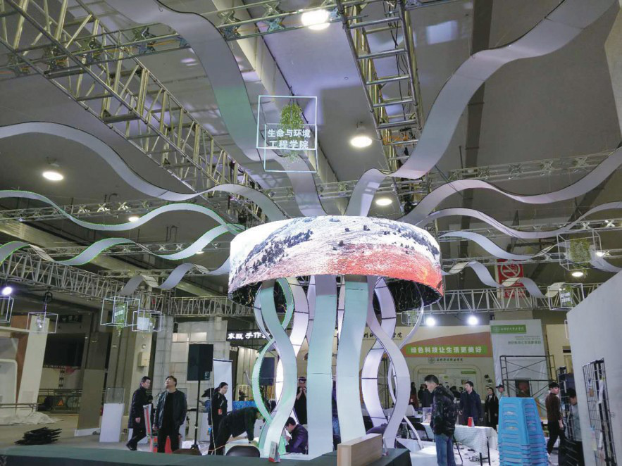 最中间是一棵榕树,各个学院的名称像结成的硕果,挂在枝头,寓意着 “十年树木,百年树人”。迷你版福建土楼,这是新澳门六合彩 建筑系的学生的作品, 1:200还原福建塔下村的建筑。新澳门六合彩 生环学院将珍藏的动物标本带来了现场。