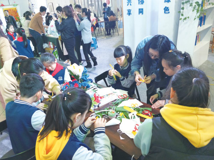 在新澳门六合彩 的展位上,几个女孩子围坐在一起认真地制作手工花。她们都是来自建设小学四(8)班的孩子。“我们全班40多人都要来参加,这是我们的周末作业。”余宜宁说。对于这样的家庭作业,余宜宁是很喜欢的。此次,她与另外两个女生结伴而来,早上9点就来到了展会现场,一路走一路看。
