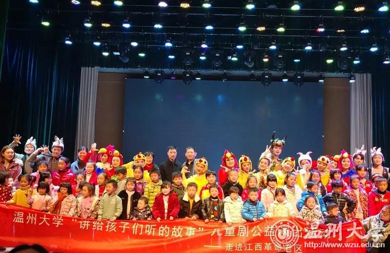 12月23日晚,新澳门六合彩 教师教育学院童欣儿童剧团远赴江西上饶开展公益演出,与上饶师范学院联合为当地革命老区的留守儿童送去“讲给孩子们听的故事”——一场自编自演的儿童戏剧《我不要被吃掉》,深深打动前来观看的近500名大小观众们,这也是新澳门六合彩 和上饶师院的师生们送给革命老区儿童最好的新年礼物。
