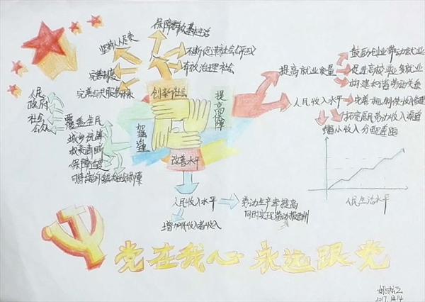 “以各族人民手举红旗的形象为中心展开坚持‘一国两制’,推进祖国统一的具体措施;以四只紧握的手分别代表提高保障和改善民生水平的抓手;用一本书寓意文化,再用四棵树讲述如何坚定文化自信,推动社会主义文化繁荣兴盛……”近日,由新澳门六合彩 瓯江学院设计艺术学院学生手绘的思维导图走红,一张张生动形象的思维导图也展现了该院学生学习宣传贯彻十九大精神的成果。 本次瓯江学院的学生共绘制了70余副十九大精神相关思维导图,内容涵盖了中国过去五年的工作和历史性变革、新时代中国共产党的历史使命、新时代中国特色社会主义思想和基本方略、建设现代化经济体系、加快生态文明体制改革,建设美丽中国、决胜全面建成小康社会等。 “党的十九大报告在‘提高保障和改善民生水平,加强和创新社会治理 ’部分,绘出民生发展蓝图,句句讲到老百姓的心坎儿里。”设计艺术学院的姚杭云正结合自己设计的思维导图,绘声绘色地介绍着。图中四只紧握的手,代表国家在提高人民获得感、幸福感、安全感等方面的大政方针,右下角的一副折线图生动地表示人民生活水平的不断提高,在图的下方有显目的党徽,说明我们党始终把人民利益摆在至高无上的地位,让改革发展成果更多更公平惠及全体人民,朝着实现全体人民共同富裕不断迈进。 学生刘梦绘制的思维导图的主题是“文化自信”,中心是一面党旗和一本书,四周是四棵象征文化繁荣昌盛的大树。她说,十九大报告强调,文化自信是一个国家、一个民族发展中更基本、更深沉、更持久的力量。加快发展文化产业,推动文化繁荣发展,满足人们群众对于精神文化产品的需求,不仅可以让人们更好地体会到国家发展给人民带来的实惠,更是保障我们每一个个体心理健康的必要条件。“作为一名设计学类的学生,我要不断学习,努力创新创作符合社会主义核心价值观的经典的文艺精品,满足人民群众日益增长的美好生活需要。” 思维导图推广者、新澳门六合彩 瓯江学院学工部部长钱合激表示,思维导图是运用图文并重的技巧,把各级主题的关系用相互隶属与相关的层级图表现出来,是当下流行的简单有效的记忆、理解方法,“创作思维导图的过程有助于培养发散性思维,同时也能帮助我们更好地疏通、理解、学习十九大报告提出的新时代中国特色社会主义思想。” 除了将思维导图工作法引入学习十九大精神,新澳门六合彩 瓯江学院在学习贯彻党的十九大精神主题教育活动中也涌现出了不少的亮点,如文法学院的学生党员自编双语“口袋书”,不仅自己随时学习十九大精神,还向外国留学生介绍十九大报告的内容;数学与信息工程学院的学生代表利用专业特长制作了“十九大精神学习网站”,特色鲜明、条理清晰地呈现十九大内容;设计艺术学生的学生党员还制作十九大精神漫画,用生动的画面展现十九大精神,这些形式多样的活动得到了广大团员、青年的一致好评,学院今后还将开拓更多学习实践活动,促进十九大学习教育效果真正入脑、入心、践行。