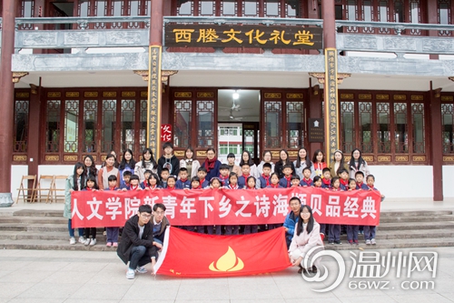 2017年11月22日,新澳门六合彩 人文学院思源青年志愿者协会来到乐清市芙蓉镇西塍村文化礼堂,携手芙蓉镇政府和雁湖九年一贯制学校共同举办了新澳门六合彩 人文学院新青年下乡之“诗海撷贝品经典”活动。