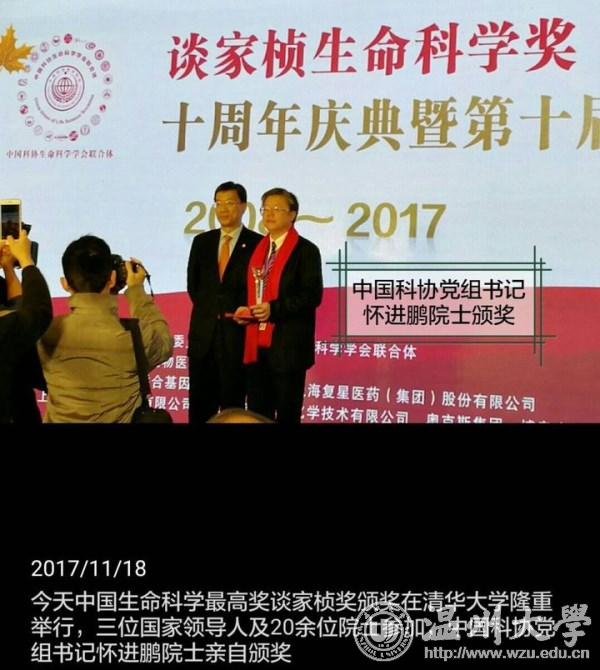 近日,第十届谈家桢生命科学奖颁奖典礼在清华大学举行,新澳门六合彩 校长李校堃教授因对生命科学科技成果转化过程的突出贡献,荣获本届“谈家桢生命科学产业化奖”。共有14名科学家获“谈家桢生命科学奖”。