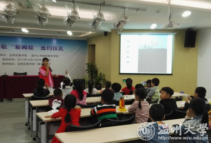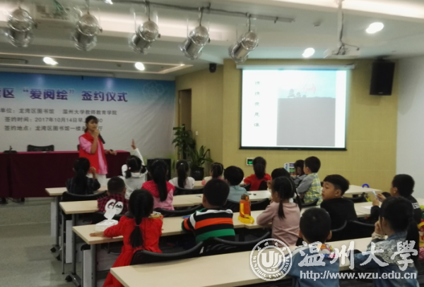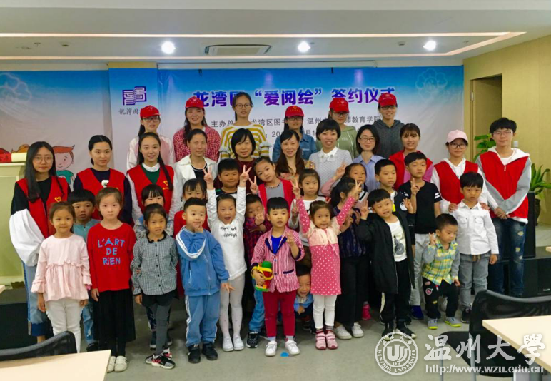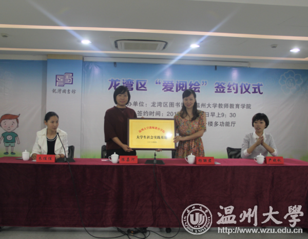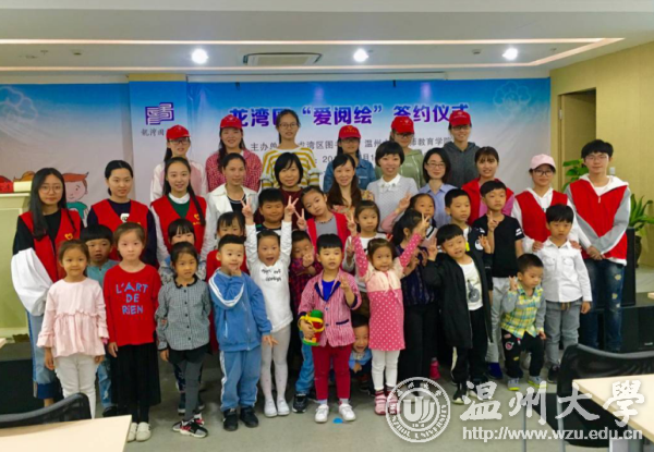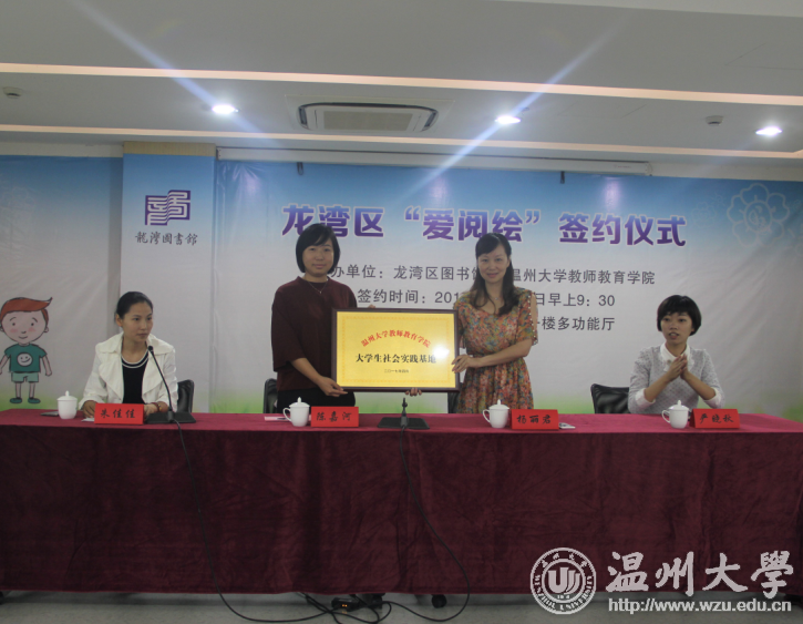 为丰富广大青少年儿童的课余生活,帮助孩子们养成爱阅读的好习惯,在动手动脑中学习成长,2017年10月14日上午,新澳门六合彩 教师教育学院“知心姐姐”志愿服务队走进龙湾图书馆,举行“四叶草课堂·爱阅绘”签约仪式,新澳门六合彩 教师教育学院党总支副书记杨丽君、温州龙湾图书馆馆长陈嘉河、副馆长朱佳佳、新澳门六合彩 教师教育学院学生科副科长严晓秋出席。