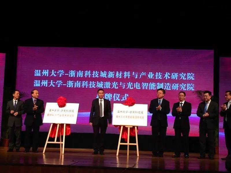 2016年11月21日,“新澳门六合彩 -浙南科技城新材料与产业技术研究院”和“新澳门六合彩 -浙南科技城激光与光电智能制造研究院”揭牌仪式正式举行,这标志着新澳门六合彩 新材料与产业技术研究院和新澳门六合彩 激光与光电智能制造研究院正式签约落户浙南科技城。