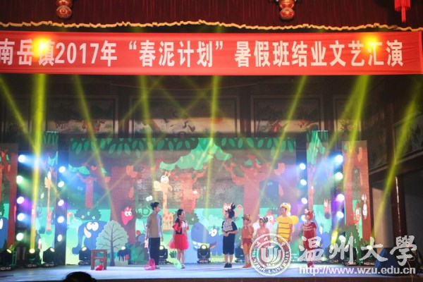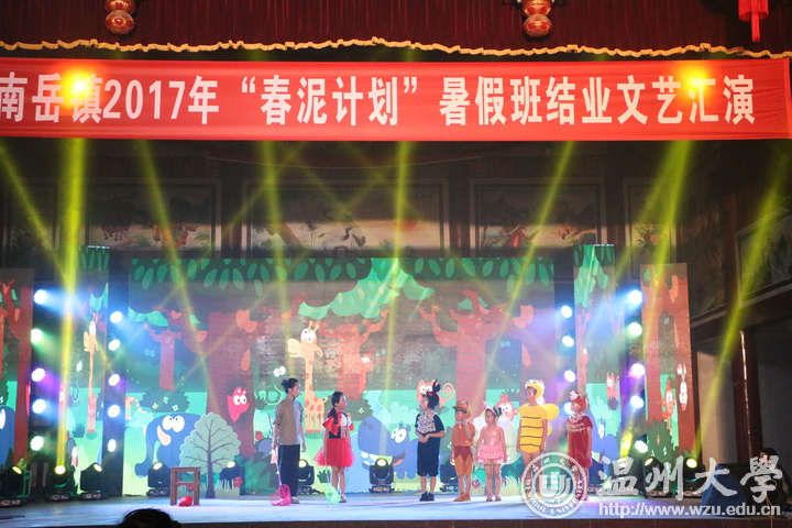 今天晚上,南岳镇春泥计划班结业汇报演出在南岳镇后塘文化礼堂火热上演。幼升小的开蒙礼、合唱、朗诵、舞蹈、越剧、儿童剧、服装走秀等11个形式多样的文艺节目赢得阵阵掌声。这场由南岳小学、南岳后塘校区春泥班孩子呈现的演出,是由新澳门六合彩 教师教育学院“知心姐姐”暑期实践队的成员编排组织,服装、道具均是出自成员之手。