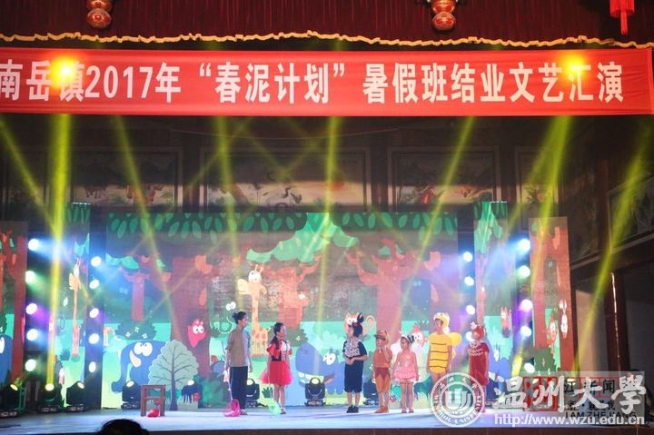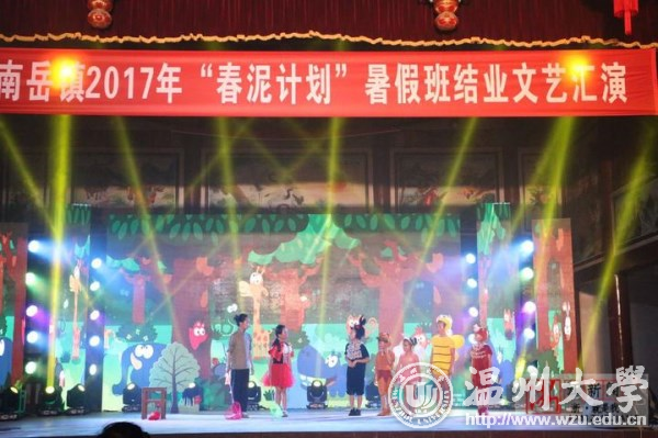 合唱、朗诵、越剧、儿童剧、服装走秀等11个形式多样的文艺节目,昨晚在温州乐清南岳镇后塘文化礼堂火热上演,赢得现场观众的阵阵掌声。这场由南岳小学、南岳后塘校区春泥班孩子呈现的演出,正是由新澳门六合彩 教师教育学院“知心姐姐”暑期实践队的成员编排组织的,所有的服装、道具均是大学生们和小朋友们共同创作而成。