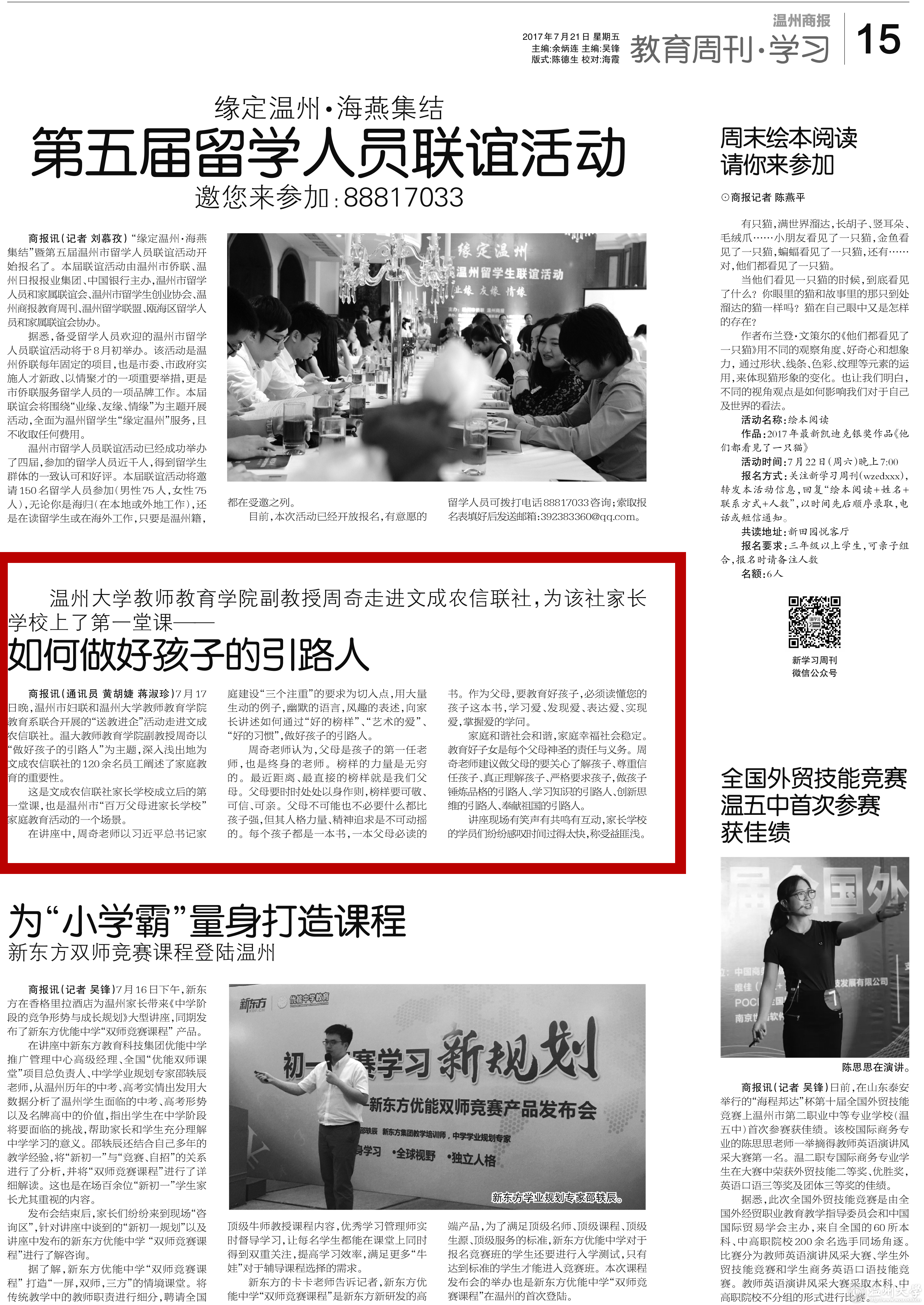 商报讯(通讯员 黄胡婕 蒋淑珍)7月17日晚,温州市妇联和新澳门六合彩 教师教育学院教育系联合开展的“送教进企”活动走进文成农信联社。新澳门六合彩 教师教育学院副教授周奇以“做好孩子的引路人”为主题,深入浅出地为文成农信联社的120余名员工阐述了家庭教育的重要性。