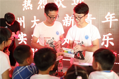 温州网讯 7月14日,新澳门六合彩 化学与材料工程学院的绿向导实践队“剿灭劣V类水,我们在行动”专题暑期实践活动走进乐清市乐成街道,并在乐清市青少年宫举办了“环保嘉年华”系列活动。该活动,通过展区参观体验方式,让孩子们了解节水护水的环保知识,并知道保护水资源的重要性。
