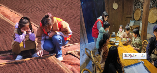 实践队在抵达古村落之后,对村落进行了一个完整的实地考察。首先大家来到了文元院,这是泰顺典型的中轴线对称三合院民居,为吴存经被选为附贡生后所建。无论是宅邸落成之时他亲自悬挂于屋檐下的“文元”牌匾,还是所作“一盏灯火夜深红,猛着心时不计工”的诗句,都让师生感受到了其意气风发、壮志凌云之豪情。在这里,墟里古村落运营负责人与师生进行热切会谈,解答师生对古村落的一系列疑问,“我们所打造的理念是从家到家”,负责人如是说道。深刻的古村落运营理念,让众人受益匪浅。其次同学们参观了红粬展览馆,师生们感叹红粬酿造的精细与复杂,从古旧的农业用具、微型建筑模型和古朴的历史绘本中,学习了红粬酒的悠久历史与当地居民的制作工艺,感受了古代劳动人民的智慧与勤劳,领略了“提线木偶戏”“乌衣红粬”“六月六禳神节”三项非物质文化遗产的奇特之处。同时,马院师生还参观了顶头厝、水尾厝和文司堂等具有悠久历史的古村落遗址;作为志愿者参与了儿童的劳动教育,在灰墙白瓦、碧波青山中体验置身于古村落中的静谧与安详,在传统手工制作与田间农作中陪伴儿童感受自然与自我,最终体会到传统古村落的历史韵味与时代沉淀。