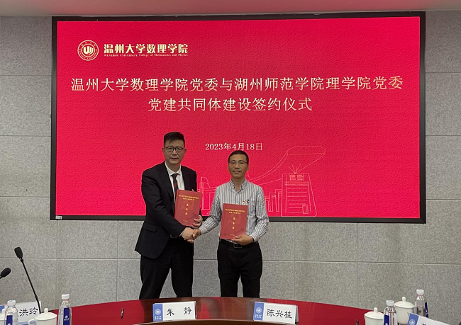 为发挥党建引领作用,促进党建与业务工作深度融合,近日,新澳门六合彩 数理学院与湖州师范学院理学院签署《党建共同体建设备忘录》,围绕双方学科特色聚力促进基础学科研究。
