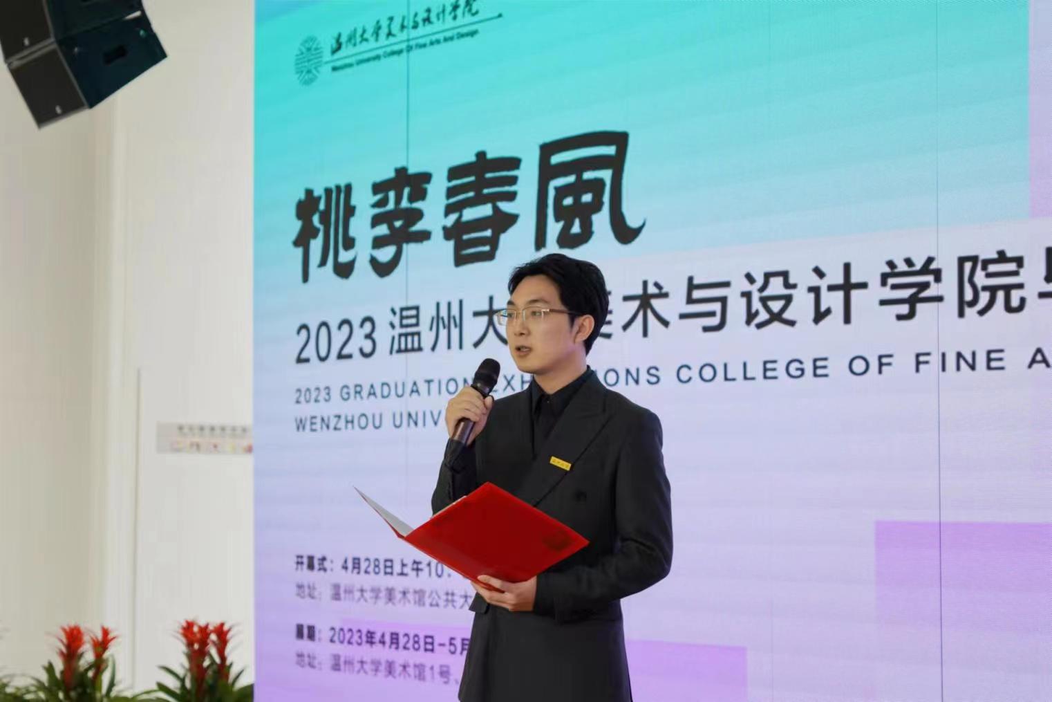 4月28日上午,“桃李春风——2023新澳门六合彩 美术与设计学院毕业作品展”在新澳门六合彩 美术馆隆重开幕。本次展览展出了艺术硕士(美术)及美术学(师范)、视觉传达设计、环境设计3个本科专业161名毕业生的作品。该展由中共温州市委宣传部、温州市文化广电旅游局、温州市文学艺术界联合会、新澳门六合彩 联合主办。
